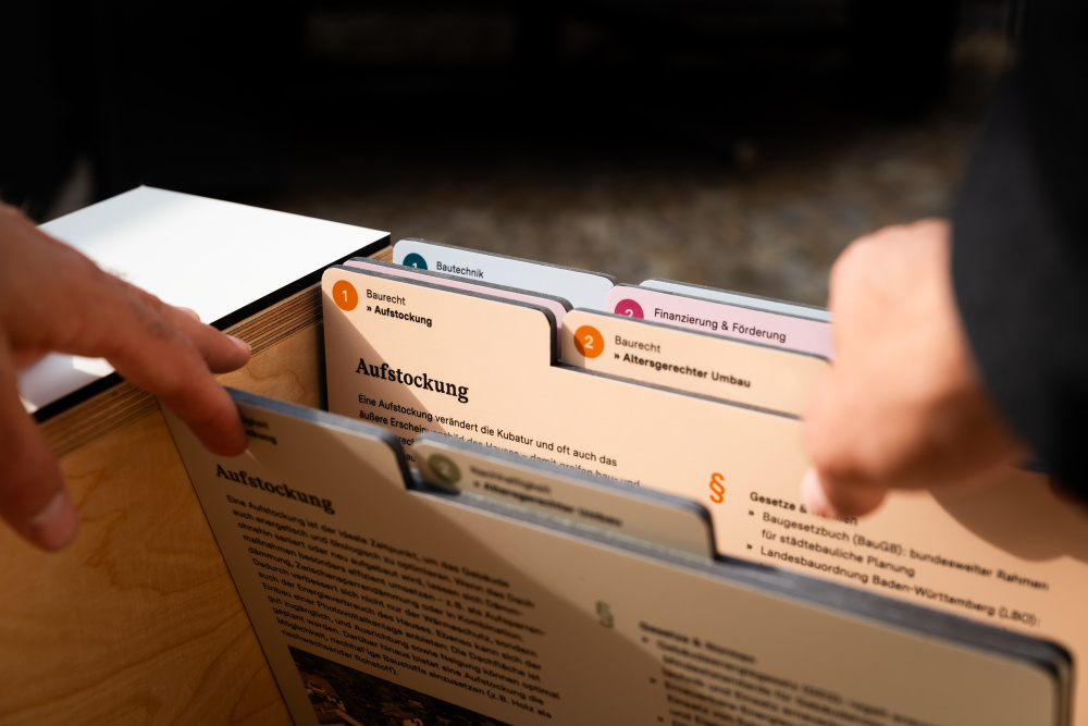 Das begehbare Ausstellungsfahrzeug ist mit einer Medienstation ausgestattet und bietet eine interaktive Ausstellung im Baukastensystem. Für den Außenbereich ist ein Sonnenschutz zur partiellen Beschattung vorhanden.